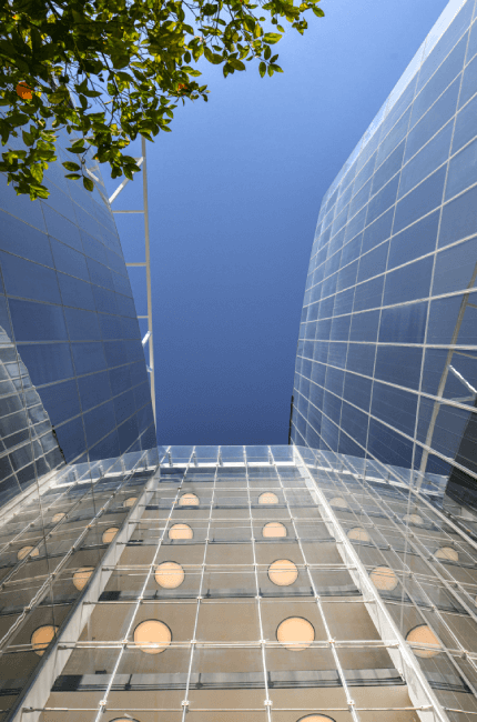 מבנה משרדים הבנוי משתי אונות אשר בתווך בניהם קיים אטריום המאפשר תצפית לעבר פארק הירקון אשר בנוי מקיר "כבלים" לכל גובה המבנה. הפרויקט בנוי מחזיתות הכוללות חלונות המורכבים במישור הפנימי של קיר המחופה פחי אלוקובונד היוצרים מראה ייחודי ומקירות מסך מעוגלים המזוגגים בזכוכיות בידודיות אשר בתווך בניהם צילון בהפעלה חשמלית, וגודלם גובה קומה ללא חלוקות אופקיות. בקומת קרקע שגובהה מעל 5 מטר זוגגו זכוכיות לכל גובה המפתח.
